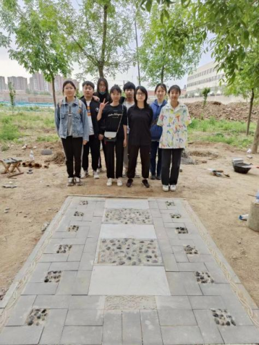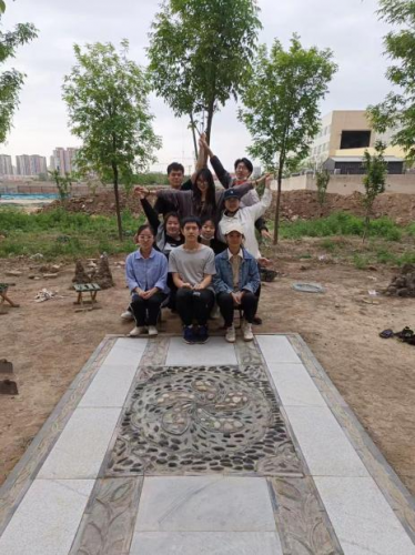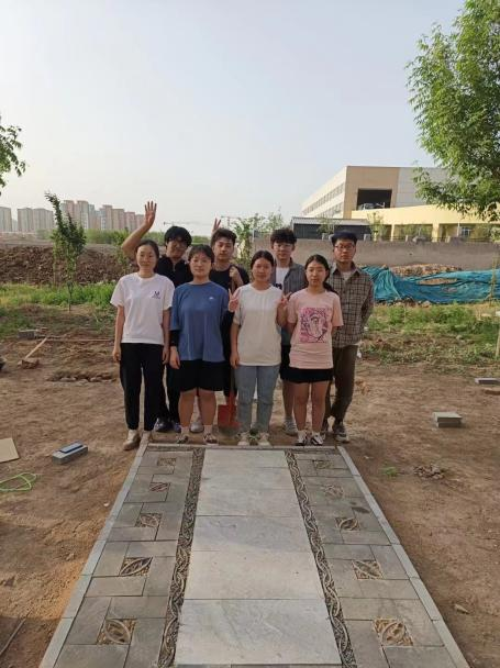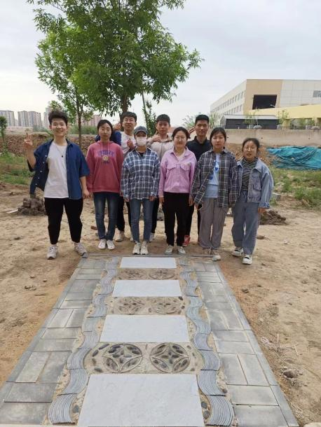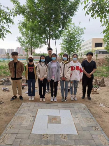 19级风景园林班25人,分为3组,21风景园林专接本17人,分为2组,对8号楼后进行园路铺装,首先进行清理场地,之后试拼图案,定点放线,准备路槽,安装道牙,对场地找平夯实,铺筑水泥砂浆结合层,对面层进行铺筑,最后进行压平、扫缝。用时两天半,同学们克服炎热的天气,勤劳苦干,细致耐心,在翟美珠老师的指导和帮助下顺利完成了铺装实训。