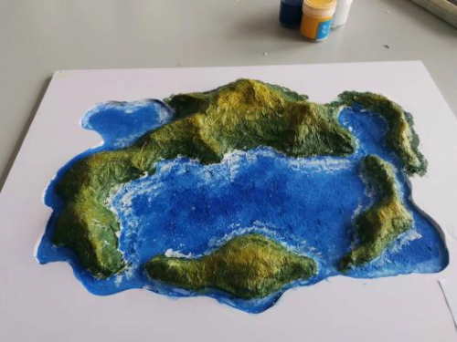 4月29日上午2019级风景园林班与2021级风景园林专接本班进行了土山设计及模型制作,提高了山体设计能力,增强了三维空间想象力,学会了土山模型的制作方法,能够将造山与造景紧密联系到一起,将山与水切合的组织到一起,在丰富景观的同时还保证色彩运用到合适的范围。(部分模型成果如下图所示)