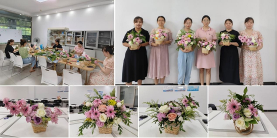 24日上午,风园系全体教师在刘娟老师的主持带领下,开展了插花花艺培训活动。活动中,老师们共同梳理了关于花材选择、色彩搭配、基本造型、插花技巧等花艺方面的知识技能点。各位老师认真修剪花束、精心做好搭配,充分展现对美的感知和理解,把一株株花草变成了色彩斑斓、独具匠心的花艺作品,加强了教师们花艺方面的专业能力,提升了美学修养,同时也陶冶了情操。
