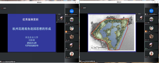 “花港观鱼”为西湖十景之一,其景所在公园是孙筱祥先生将我国古典园林与西方现代园林相结合的成功典范,是我国最具代表性的园林景观设计案例之一。刘桂林教授详细阐述了“花港观鱼”公园的建造背景、造园思想、设计理念、营造手法、呈现效果等内容,深入浅出、引人入胜,使在场师生更加深刻的理解了花港观鱼公园的精髓与魅力,加深了大家对风景园林设计的认知和感悟。