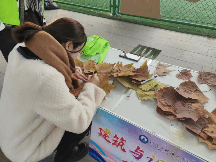 落叶,这是大自然给我们的一份独特的馈赠,也是引导人们真切感受秋天的美好、亲近自然、探索自然奥秘的大好时机。为了激发大家对季节变化的探索欲望,让大家与大自然亲密接触,丰富其社会经验,BEAT365英国官网暨建筑与设计学院2023年11月23日开展了首届落叶创意文化节,在建筑与设计学院社团联合会的组织的策划下,形态各异的落叶在17组参赛人员的设计和装饰下,变成了创意无限的作品,引得过路同学纷纷打卡,吸引人们的目光,传递出对于自然环境和生活的美好向往和热爱。进入霜降节气后,深秋景象明显,冷空气南下越来越频繁。