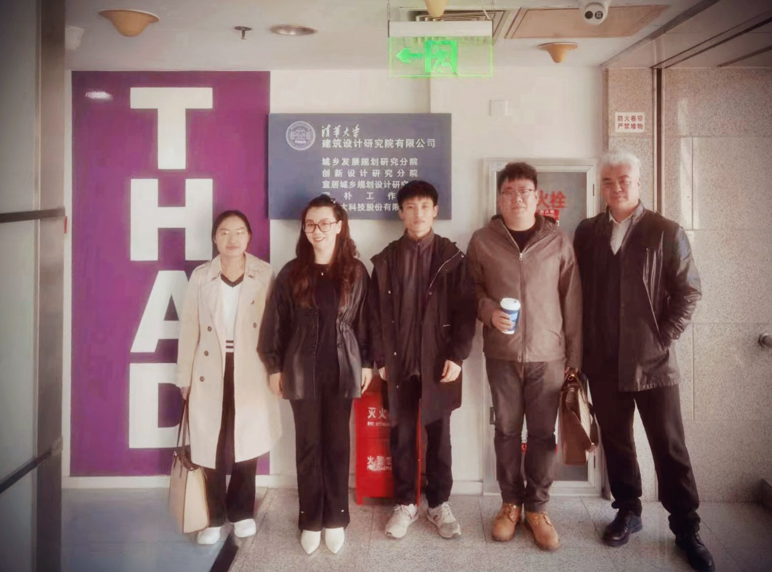 与清华设计研究院负责人座谈交流 | 与实习学生陈泽在清华建筑设计院留影 | 参观清华大学校园 |