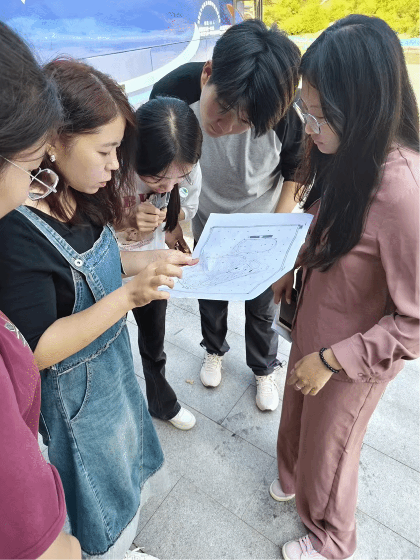 调研活动中,风景园林专业师生深入了解了赞皇校区校园绿地的概况,对教学楼前、学生宿舍楼间、学校门口等主要绿地地块进行了测量、拍照,分析其现状、地形地势,识别现有植物种类为后期的设计和有效利用做准备。课程中设计小组将依托校园文化及功能开展景观设计。