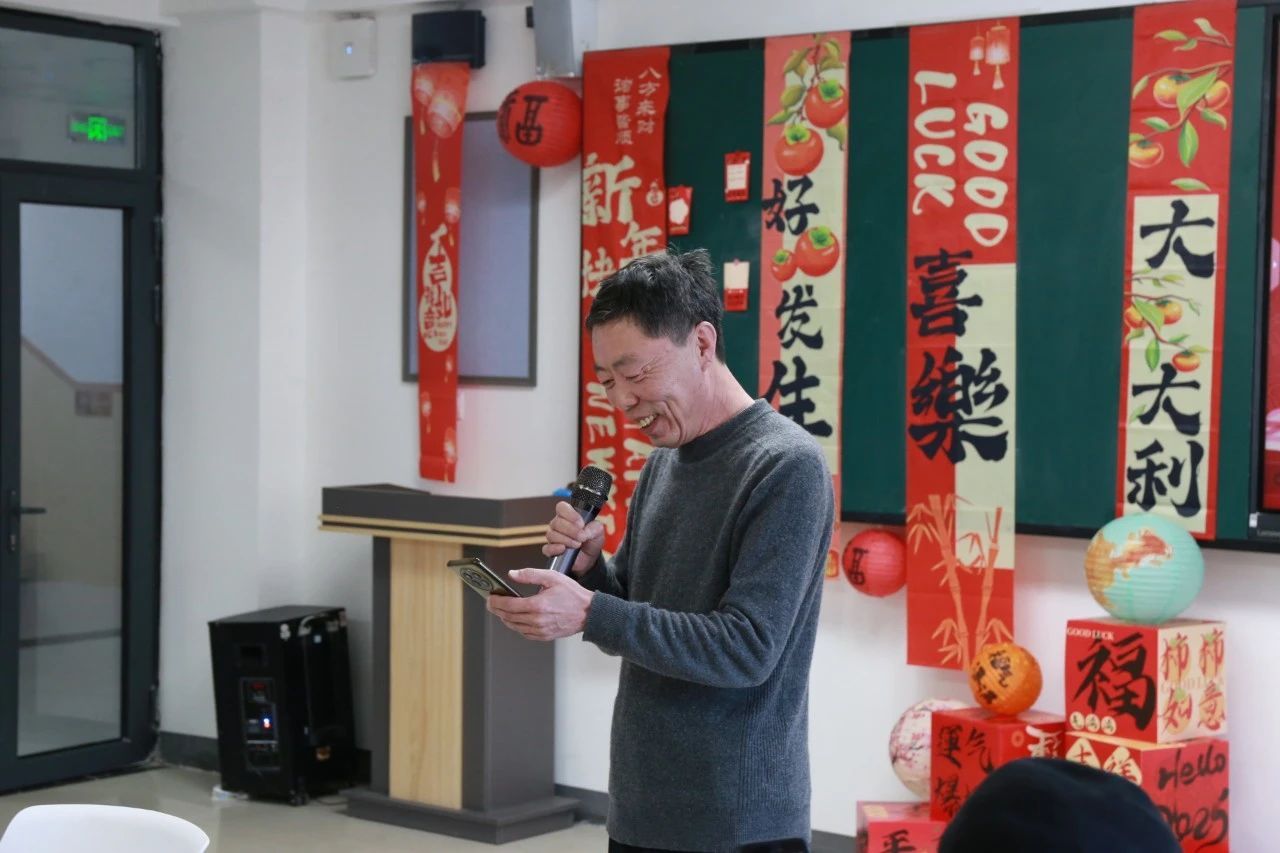 活动伊始,张杰院长代表学院领导班子向教职工致以新春的祝福和诚挚的问候,并回顾了2024年我院在教学科研、学生管理、教师发展等方面取得的优异成绩,对广大教职工的辛勤付出表示衷心感谢,表彰他们在各自岗位上做出的突出贡献。随后,张杰院长倾情献唱,激昂有力的歌声将新年的美好期许与诚挚祝福传递给在场的每一位。紧接着,众多教师依次登台一展歌喉,现场气氛温馨和谐、笑语盈盈。