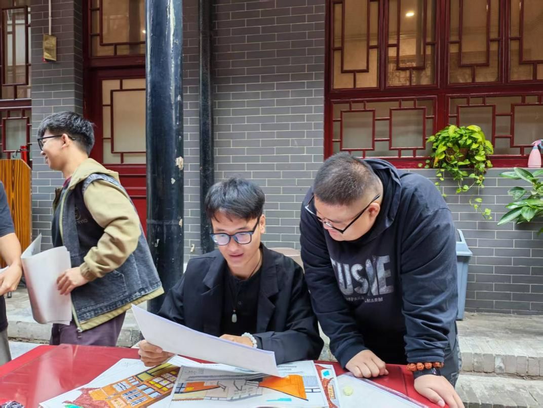 与此同时,风景园林专业的同学们则将目光投向了古城的细节与生机。他们流连于县衙、文庙、日升昌票号等深宅大院之中,悉心揣摩北方传统园林的造景手法。虽无江南园林之玲珑,但平遥院落中的砖雕、木刻、石饰以及庭院植物的配置,无不体现着严谨的法度与质朴的审美。在写生过程中,同学们专注于捕捉光影在庭院中的变化,描绘古树与建筑相映成趣的景致,分析如何通过有限的景观元素营造出宁静、内敛而又充满生活气息的居住环境。
