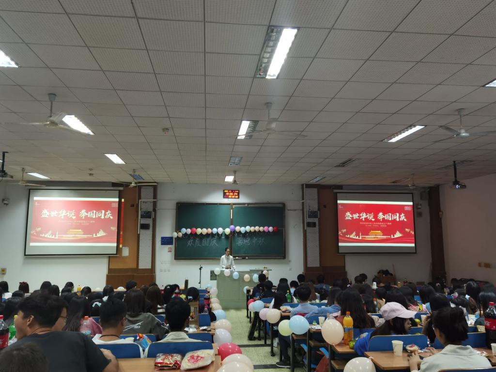 10月1日晚,数学与统计学学院于三教C225室举办“情满中秋,礼赞国庆”联欢会,2019级全体学生参加,活动由高会颖老师主持。
