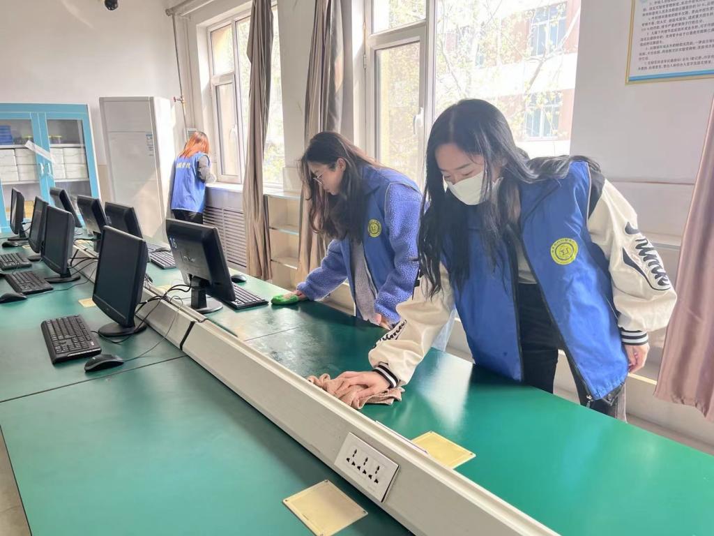 此次党日活动主要内容是负责经贸大学附属中学重点场所的清扫工作,学生党支部成员以及青年志愿者们按清扫区域分为四组,主要对活动室、实验室及会议室进行打扫、清理。