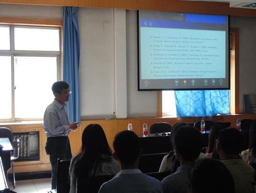 5月18日下午,数学与统计学学院邀请石家庄铁道大学副校长、博士生导师刘国欣教授,在二办303会议室为师生作《半动力系统与可加泛函》学术讲座。