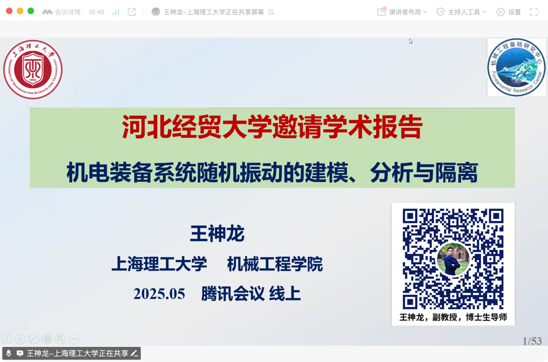 5月17日上午,上海理工大学王神龙教授应永利集团88304官网邀请在线上作题为“机电装备系统随机振动的建模、分析与隔离”的学术报告,相关专业师生20余人参会。