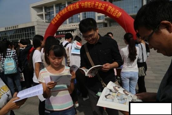 同时,省统计局为现场活动准备了丰富的统计宣传资料,在咨询台向学生发放人口、平均工资、居民收入是如何统计的,一套表流程图,第三次农业普查知识,12340电话访问系统介绍,统计信息公开内容和方式等彩色宣传单1400份,《统计法》、《民生统计面面观》和《漫画统计学》等通俗易懂的统计书籍200余册。