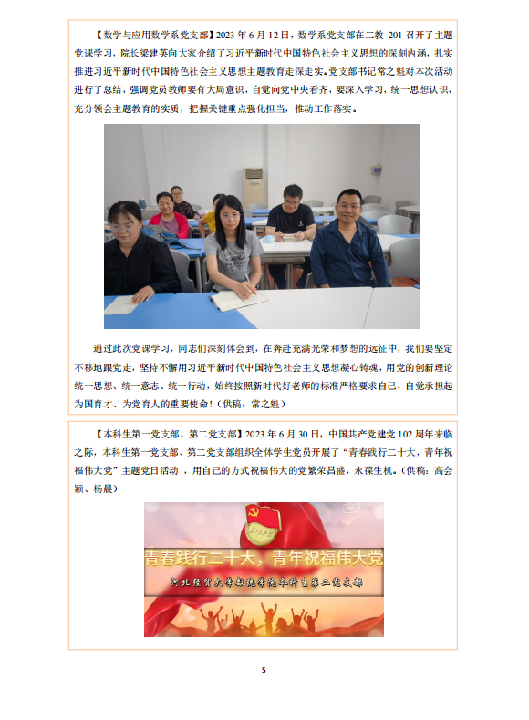 【本科生第一党支部、第二党支部】2023年6月30日,中国共产党建党102周年来临之际,本科生第一党支部、第二党支部组织全体学生党员开展了“青春践行二十大,青年祝福伟大党”主题党日活动 ,用自己的方式祝福伟大的党繁荣昌盛,永葆生机。(供稿:高会颖、杨晨)