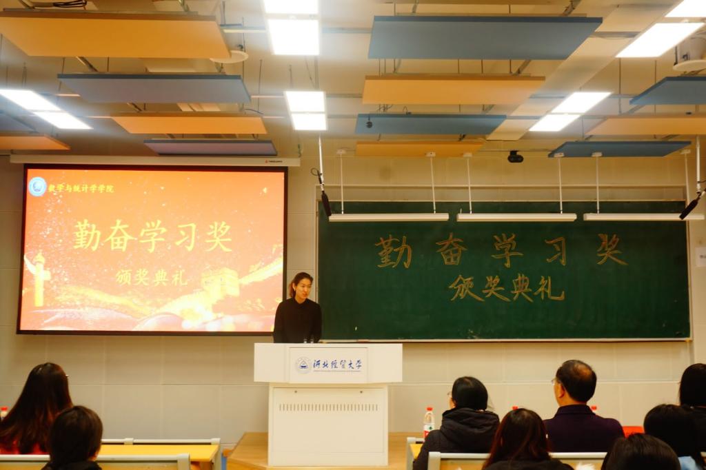 为激发同学们的学习积极性,表彰大家刻苦钻研、不懈努力的精神,12月2日下午两点,数学与统计学学院于北三教A201举办“勤奋学习奖”颁奖仪式。颁奖仪式由学工办主任高会颖主持,院党委书记祃海霞、院长梁建英、院党委委员耿会清、副院长王玲书、闫亮出席,各年级辅导员、学生代表参加活动。