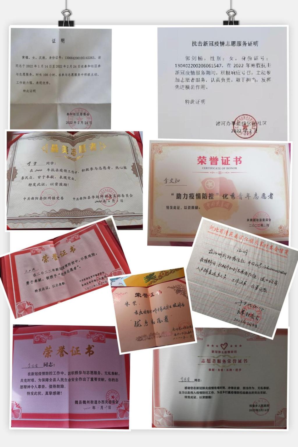 疫情就是冲锋号,防控就是责任。疫情防控是一场保卫人民群众生命安全和身体健康的严峻斗争,数学与统计学学院的学生志愿者分布在全国各地,在2021年12月-2022年2月,集结在新冠肺炎疫情联防联控的第一线,用青春与汗水守护家园。本次抗疫志愿服务,永利官网共有62位同学参与,获得荣誉证书、奖状共计70余项,其中有6位同学表现尤为突出。