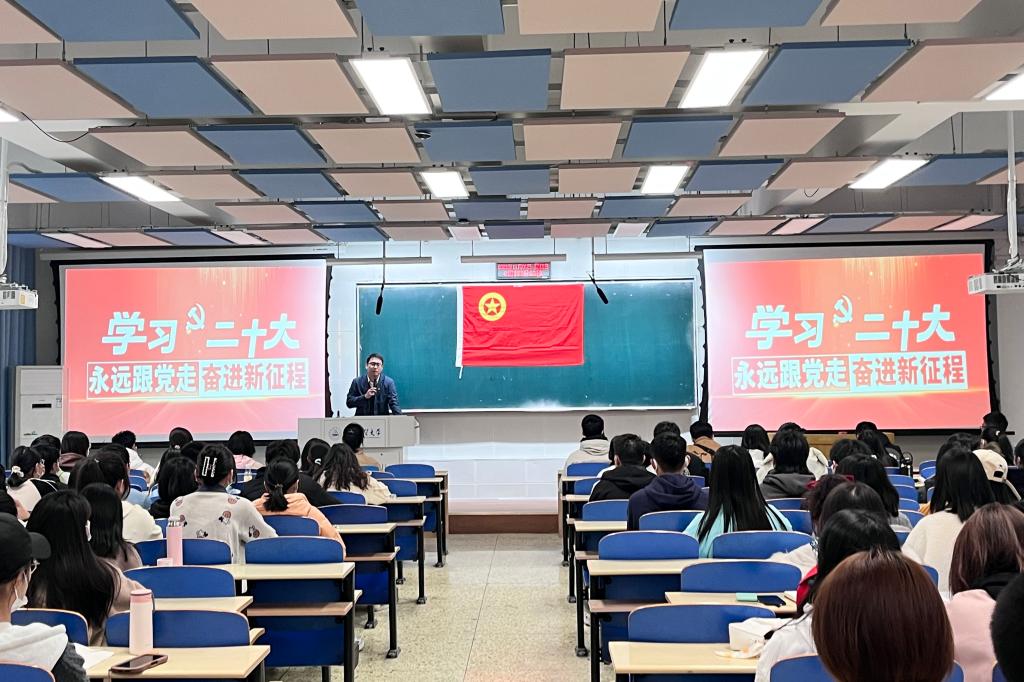为了提高广大青年团员的思想觉悟,学习宣传贯彻党的二十大精神。11 月 6 日上午,数学与统计学学院于北三教A101举行第十三期“青年马克思主义者培养工程”骨干培训班开班第一课,院团委书记王洋老师讲授开班第一课,全体青马班成员参加。