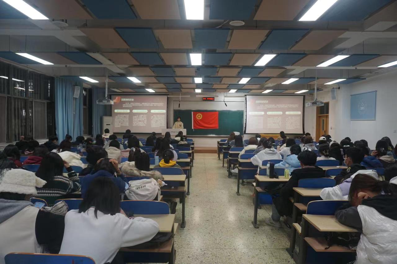 11月11日,数学与统计学学院于北三教B301举行第十三期“青年马克思主义者培养工程”骨干培训班第五课,团委宣传部部长张芮宁讲授第五课,全体青马班成员参加。