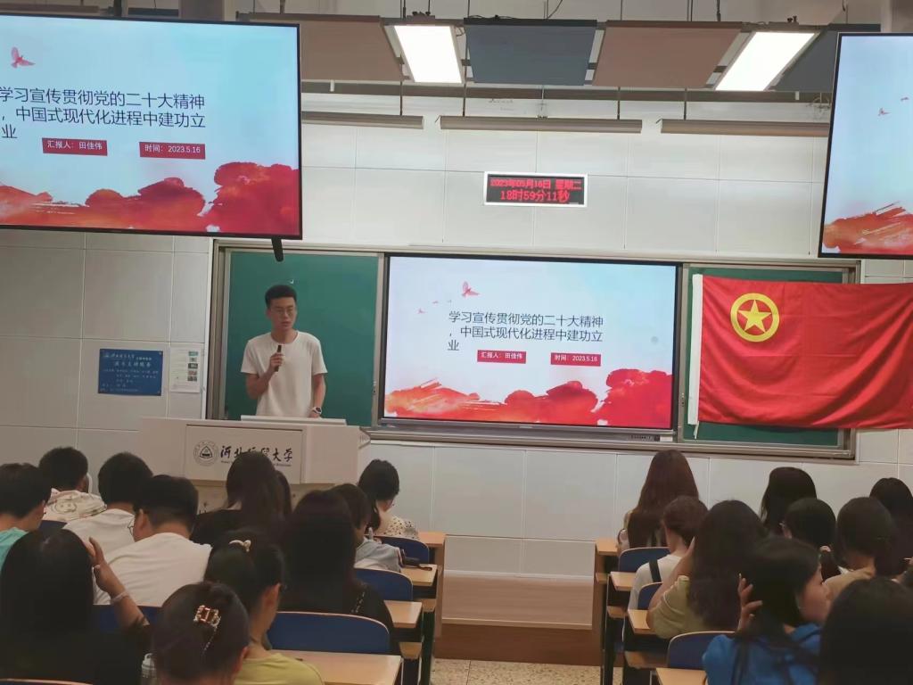 本次课程以学习宣传贯彻党的二十大精神,中国式现代化进程中建功立业为主题,共分为党的二十大精神、现代化、中国式现代化和如何在中国式现代化中建功立业四部分。田佳伟向学员们详细介绍了“党的二十大的主题”“三个务必”“十年来的三件大事”“六个必须坚持”“两步走战略安排”“五个重大原则”“五个必由之路”等重点内容,使学员们更加深刻地了解党的路线、方针、政策。最后,他还提出要将党的二十大精神充分融入中国式现代化建设中,同时当代青年应培养自己的专业技能和创新能力、关注社会问题并积极投身公益事业、掌握多语言和跨文化交际能力、积极参与创业和创新活动。