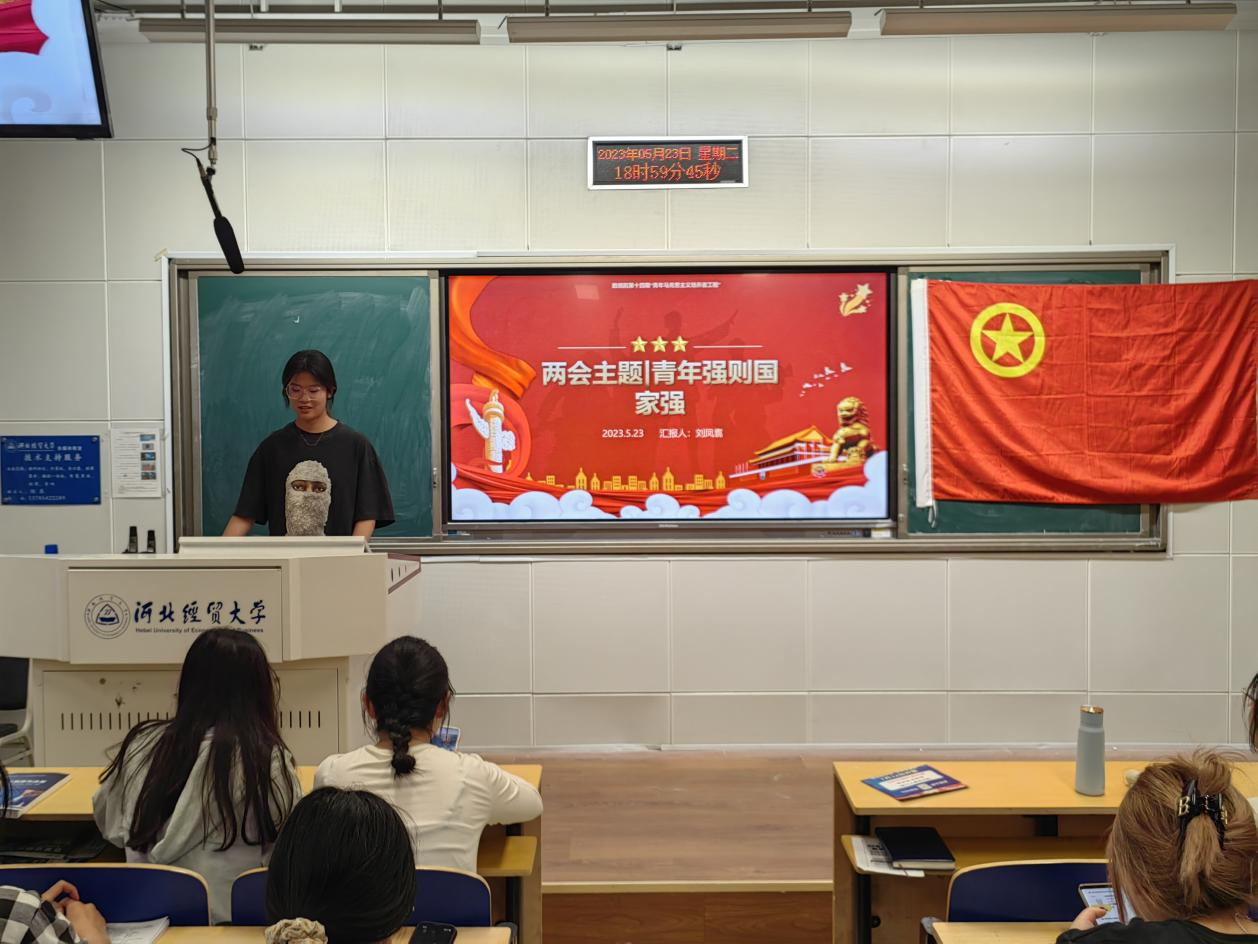 本次课程以“青年强则国家强”为主题。她首先向学员们详细解读了新时代的青年使命是什么,然后向大家介绍了优秀青年代表和先进事迹:青年党员代表卢毅、全国人大代表邹彬、湖北非物质文化遗产应城豆皮第四代传承人程梦醒、新疆疏附县乌帕尔镇党委副书记崔久秀以及大学生村官樊静蓉。最后她总结道:新时代青年要勇于砥砺奋斗、厚植爱国情怀、接续奋勇担当,新时代青年唯有保持拼搏奋斗的精气神,让奋斗成为青春最亮丽的底色,把自己的理想同祖国的前途、把自己的人生同民族的命运紧密联系在一起,用最饱满的状态、最激昂的斗志,扎根在祖国最需要的沃土上,在担当中历练、在尽责中成长、在实践中厚植爱国情怀。