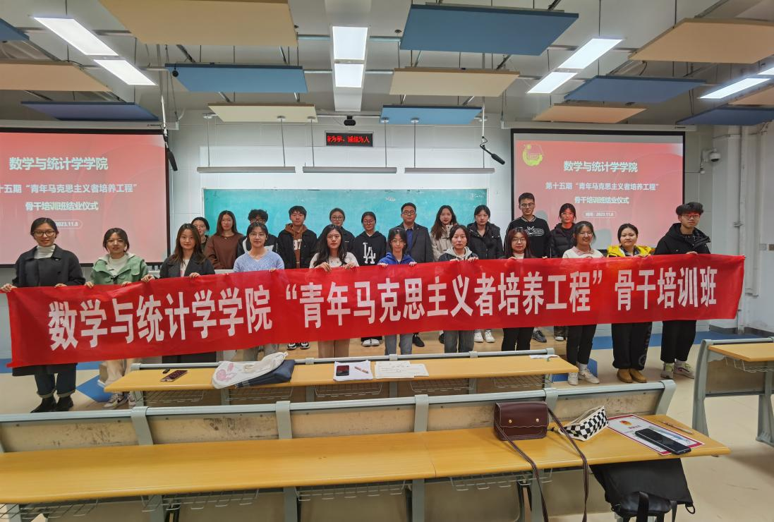 11月9日,数学与统计学学院于北三教A201举行第十五期“青年马克思主义者培养工程”骨干培训班结业仪式,院团委书记王洋老师出席并讲话,全体青马班成员参加。