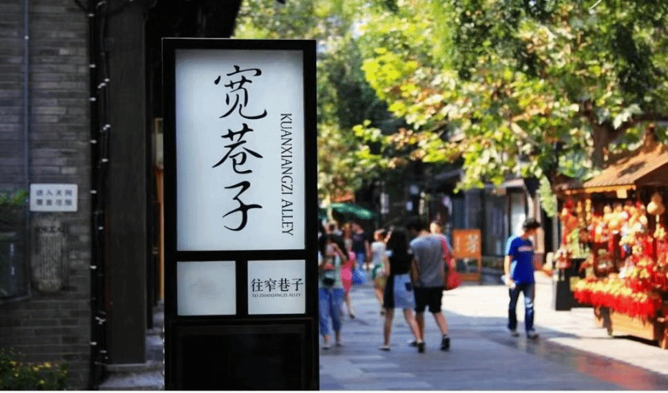 宽窄巷子,是成都市三大历史文化保护区之一,由宽巷子、窄巷子和井巷子三条平行排列的城市老式街道及其之间的四合院群落组成,其建筑风格兼具川西民居与北方四合院的特点。而在改造后延续了清代川西民居风格,街道在形制上属于北方胡同街巷。沿街传统特色立面保存基本完好,其中以院门的形式最为丰富。每家每户的大门呈现出不同风格、不同材料、不同朝向、不同尺度,有屋宇式、石库门等。加上黑灰墙与小青瓦做的窗花,整个街道的主调呈现出清代的特征。