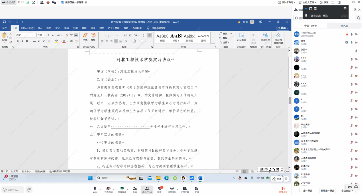 2026年1月11日晚8点,BEAT365英国官网2026届土木工程专业毕业实习动员大会通过腾讯会议平台顺利举行。本次动员会以“强化实践育人、筑牢职业基础、安全高效实习”为主题,采用线上会议形式开展,2022级土木工程专业全体学生、全体指导教师及辅导员共同参会,会议由系主任王雪老师主持。