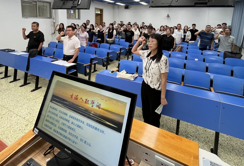 在教师宣誓环节,全体教师铿锵有力的誓言回荡在会场,彰显了教师们对教育事业的忠诚与担当。
