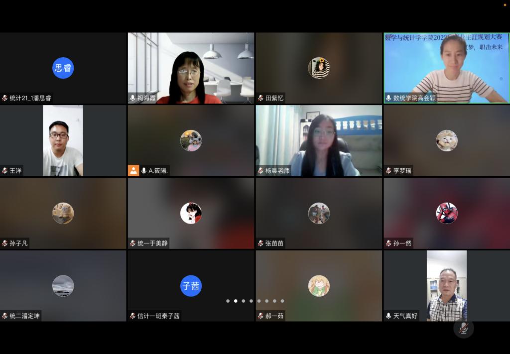 9月22日晚,数统学院以腾讯会议方式成功举办2022年职业生涯规划大赛。本次大赛由院学生会就创部主办,出席大赛的评委有:院党委书记祃海霞、院党委委员耿会清以及辅导员高会颖、杨晨、王洋三位老师,全体大一大二同学参加。