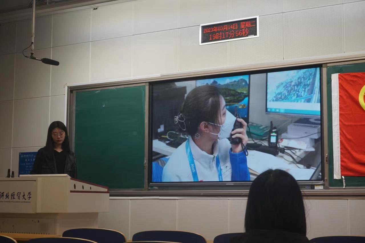 首先,由冯海云、蔡佳雨与大家分享有关冬奥志愿服务经历的心得感悟。宣讲内容从三方面展开:冬奥知识、志愿服务介绍与志愿服务感悟。2021年10月份,2022年北京冬奥会和冬残奥会志愿者招募工作基本完成,赛会志愿者培训工作全面展开,永利官网优秀志愿服务代表加入永利集团88304官网志愿服务的队伍前往冬奥赛场。“我为加入志愿者的行列而开心快乐”冯海云同学回忆道,“在山地新闻中心的工作是一次特别的经历”。两位亲志愿者通过质朴的话语,使同学们更近一步知道了冬奥精神的内涵,什么叫“一身天霁蓝,一颗火热心”。