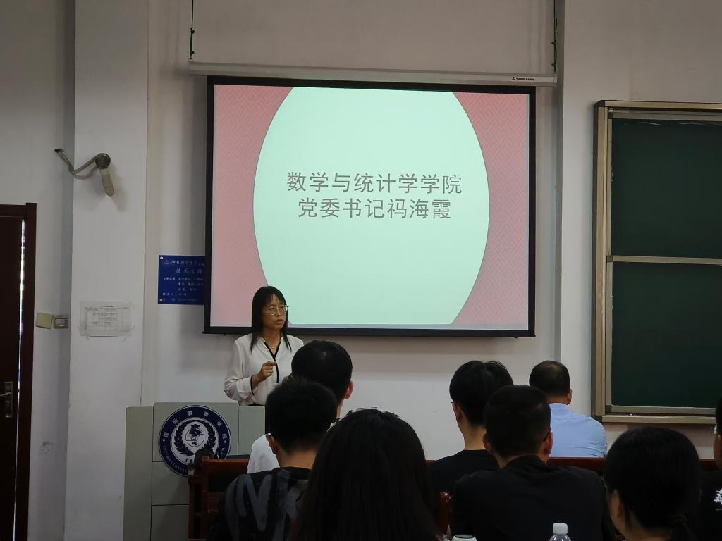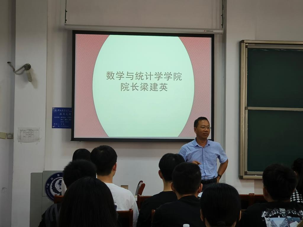 梁建英院长首先对新生加入数统大家庭表示祝贺和欢迎,接着以国家对教育的重视与投入讲述自己读研经历,并告诫同学们要珍惜研究生身份,对得起研究生称谓,叮嘱同学们克服困难,栉风沐雨,砥砺前行,不忘考研初心,牢记考研使命,一步一个脚印,实现小目标,做德行合格的人,实现大目标做社会主义的合格建设者和接班人。然后,梁建英院长以著名统计学家C.R. Rao"在抽象的意义下,一切科学都是数学;在理性的基础上,所有的判断都是统计学"对学院专业和光辉历史与传统进行了介绍。最后,提出希望同学们能够在研究生期间,收获知识,积累本领,收获友情,开阔视野,以梦为马,不负韶华,在追逐诗与远方的路上披荆斩棘,勇往直前,期盼新同学继往开来,在新时代伟大征程中谱写新时代壮丽篇章。