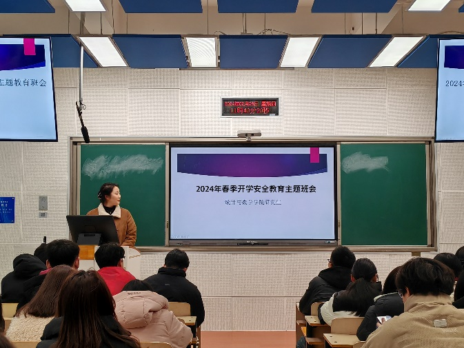 为认真贯彻落实上级有关部门学校安全工作的决策部署和《关于全面加强和改进新时代学校卫生与健康教育工作的实施方案》要求,2月29日,统数学院组织研究生召开安全教育主题班会。