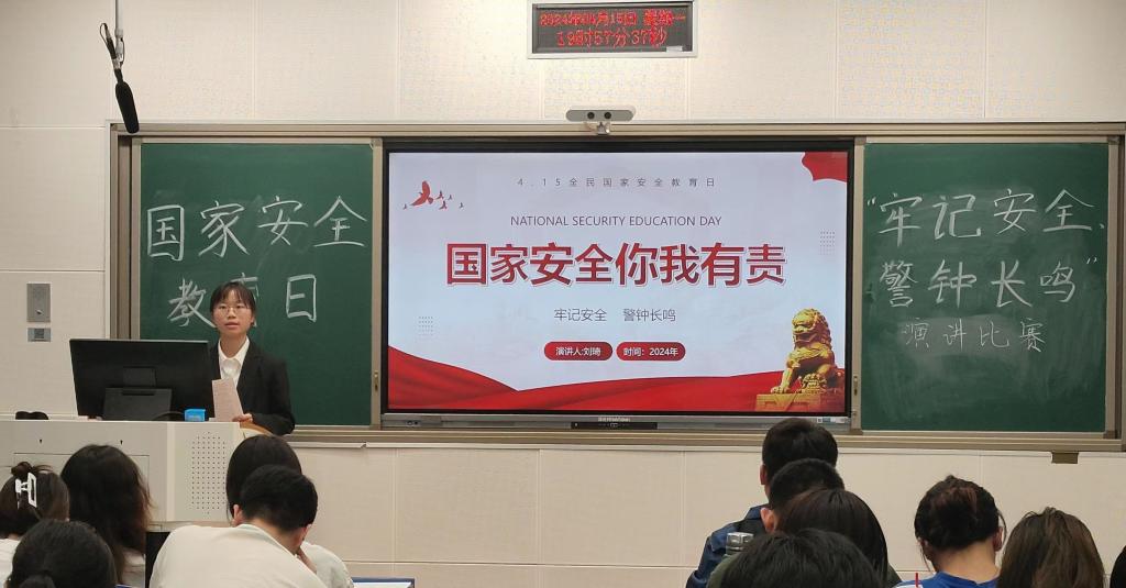 今年4月15日,是我国第九个全民国家安全教育日。永利集团88304官网于北三教B103举办“牢记安全,警钟长鸣”国家安全教育日主题演讲比赛,来自全院的12名参赛选手,结合自身学习和生活实际,分享着他们对国家安全的深刻理解。院团委书记王洋老师出席比赛现场并讲话,全体学生会成员和学生代表参加。