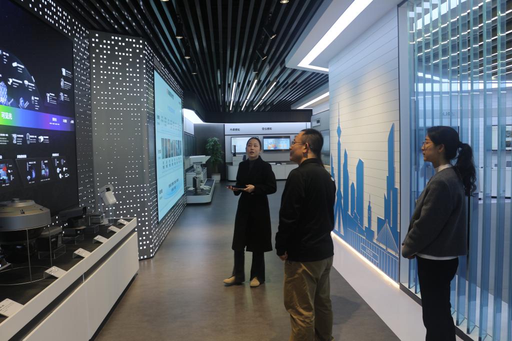 在海康威视石家庄科技园内,企业高级人力资源专员常兵、高级行业销售李友带领师生一同参观公司展厅。展厅内,一系列前沿科技产品和创意文案令人目不暇接,从高清智能监控设备到大数据分析系统,从先进的安防技术到智能化的行业应用,海康威视全方位展示了其在科技领域的深厚底蕴与创新实力。师生们不时驻足询问,对企业在视频监控技术、人工智能算法等方面的卓越成就表示赞叹,深刻感受到科技创新如何赋能各行各业守护社会安全与推动行业进步。