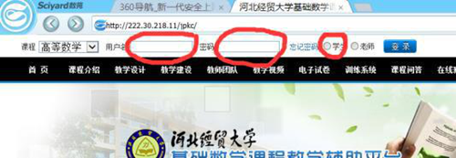 http://222.30.218.11/jpkc, 用户名和密码默认为学号,勾选“学生”,点击登陆;