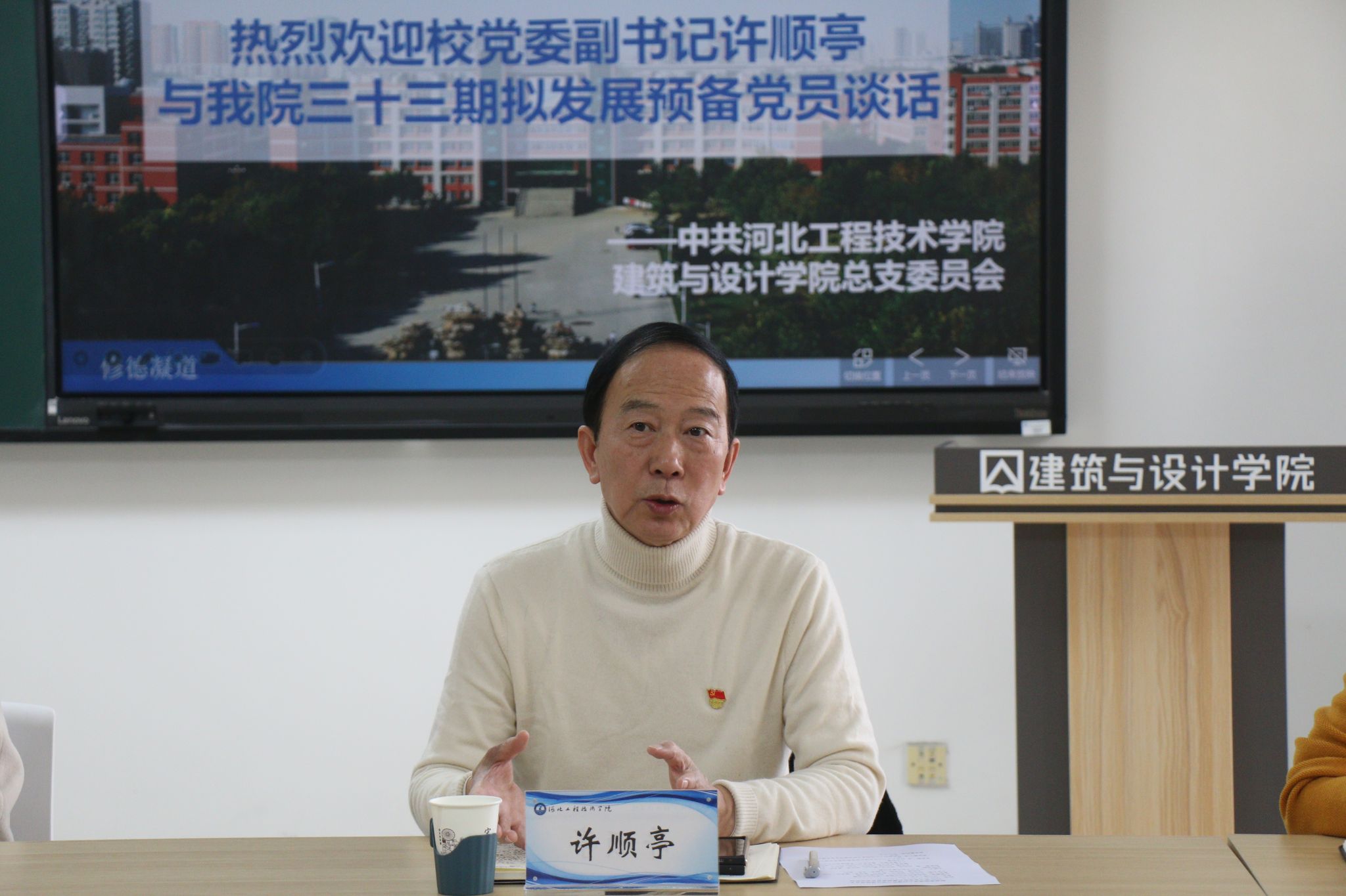 为进一步了解建筑与设计学院2023 年下半年拟发展预备党员的思想动态和入党动机,加强党员队伍建设,提高党员素质,2023 年 12 月 27 日下午 15点校党委副书记许顺亭于知行楼(主教)602 对我院第三十三期拟发展预备党员进行了谈话。