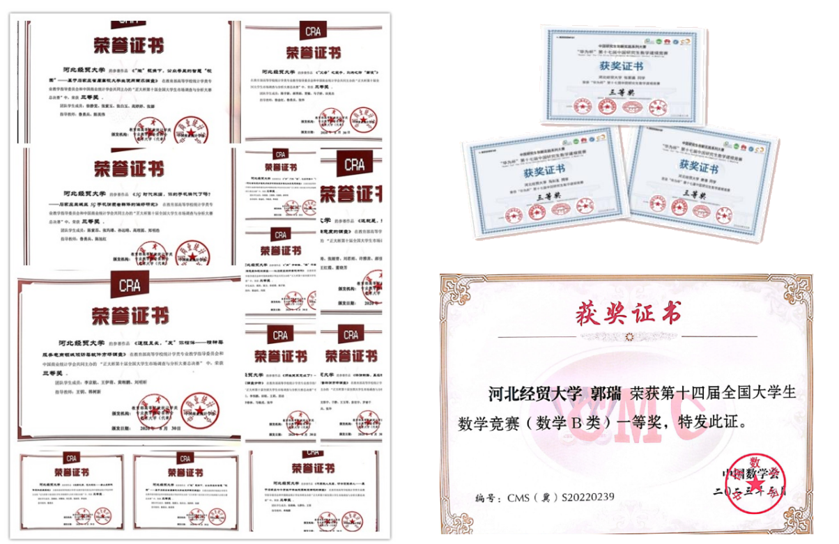 系统的科研训练:学院重视学生素质提升和创新能力培养,每年组织开展数学建模竞赛、数学竞赛、市场调查大赛、统计建模大赛等10余项赛事,其中7项为国家级赛事。“校-省-国家”三级竞赛机制完善,学生活动丰富多彩,赛教融合大大提升了学生的实践创新能力。2022年学院共获得101项学科竞赛奖项,其中国家级奖项74项(一等奖16项、二等奖23项、三等奖35项),省级奖项24项(一等奖8项、二等奖14项、三等奖2项)。