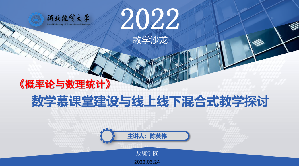 2022年3月24日,由教学评估与教师教学发展中心主办、数学与统计学学院承办的本年度第6期教学沙龙顺利举行。数统学院应用数学系陈英伟主任通过腾讯会议做了“《概率论与数理统计》数学慕课堂建设与线上线下混合式教学研讨”线上交流分享,数统学院、信计学院、会计学院等部门的80余名教师参加。