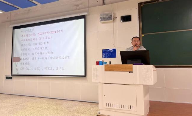 首先,市调赛事负责人闫亮老师向同学们介绍了本次宣讲会出席的老师和同学,并讲解了我校学生在本项赛事上取得的优异成绩,去年我校本科组共荣获国家一等奖1项、国家二等奖2项、国家三等奖12项,其中国一队伍进入全国前26强,在复活赛中争夺公开赛名额,打破我校记录取得佳绩。