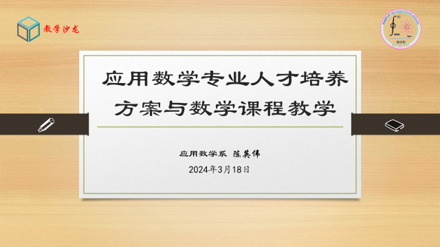 3月18日,由教学评估与教师教学发展中心主办、永利集团88304官网承办的数统智汇(2024年第1期,总期第44期)沙龙活动顺利举行。数学与应用数学系系主任陈英伟博士做了“应用数学专业人才培养方案与数学课程教学”经验交流分享。学院党委书记祃海霞、副院长王玲书、副院长闫亮及学院部分教师30余人参加。