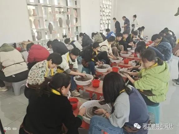 结束了陶瓷厂之旅后,在老师的带领下,我们又前往了以陶瓷为发展特色,结合旅游业与第三产业创新的陶瓷水镇,进行了更深层次的学习与研究。在这里,同学们亲自上手,在师傅们的引导与帮助下,感受到了泥土再手指缝隙间穿梭,又在机器的旋转与水的磨合中逐渐塑性,从一团没有形象的泥巴,肉眼可见变化为器皿的过程。
