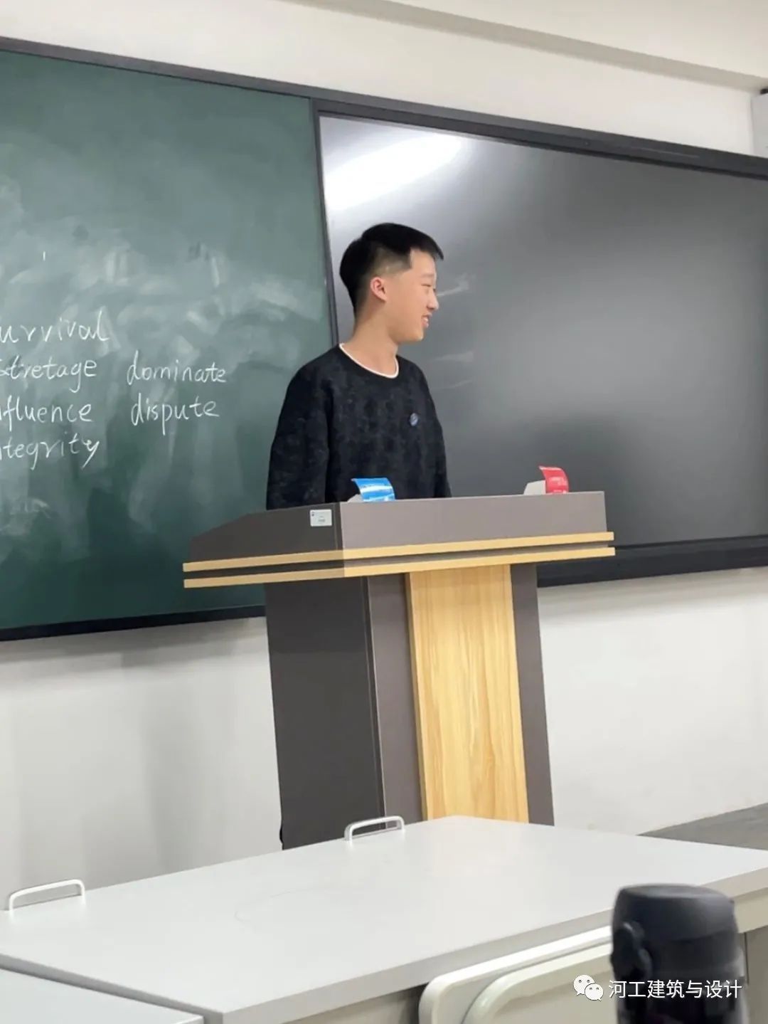 在这之后同学们都非常积极和热情,将整个班级的氛围带动了起来。接下来上台的这位同学在班级里担任学习委员一职,他经常颁布作业任务并收取同学们的作业,非常辛苦。他跟同学们讲解了作业对平时成绩的重要性,呼吁大家积极提交作业不要拖拉。同学们也都意识到了学委的不容易,纷纷表明会尽快提交作业。此刻,班级的凝聚力又得到了提升。