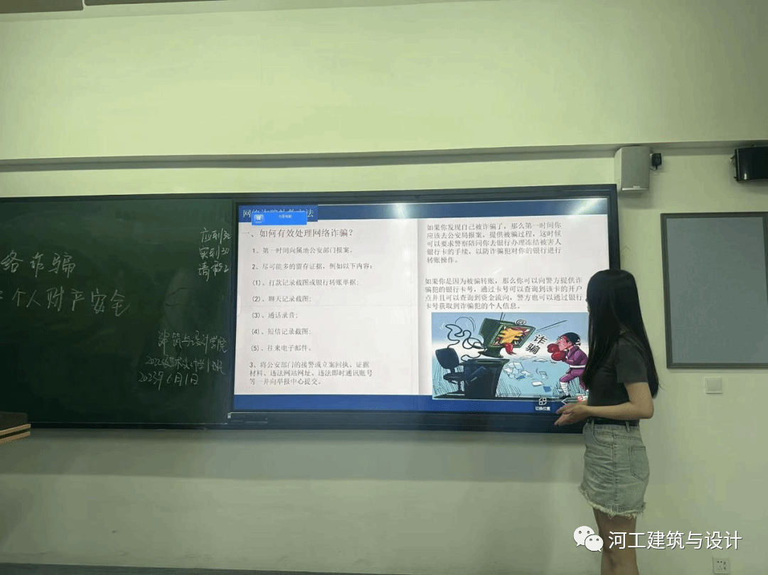 近年来,诈骗案件越来越多,诈骗分子手段也越来越高超,全国各大高校陆续发生学生被骗案件。犯罪分子利用一些学生的虚荣心、贪廉价、单纯等心理特点实施各种诈骗手段,使受骗学生蒙受巨大的财产损失和精神压力。为切实提高同学们对网络、电信诈骗的识别和应对能力,建筑与设计学院22级学生于2023年6月1日在主教以班级为单位召开“谨防网络诈骗保护个人财产安全,”防范校园诈骗主题班会。首先主讲人明确本次班会主题为“预防诈骗”,围绕大学生防诈骗这一主题展开,从诈骗的几种类型讲起,揭发了各诈骗方式的普遍套路,详细告知谨防各类型诈骗应该注意的事项以及预防方法。