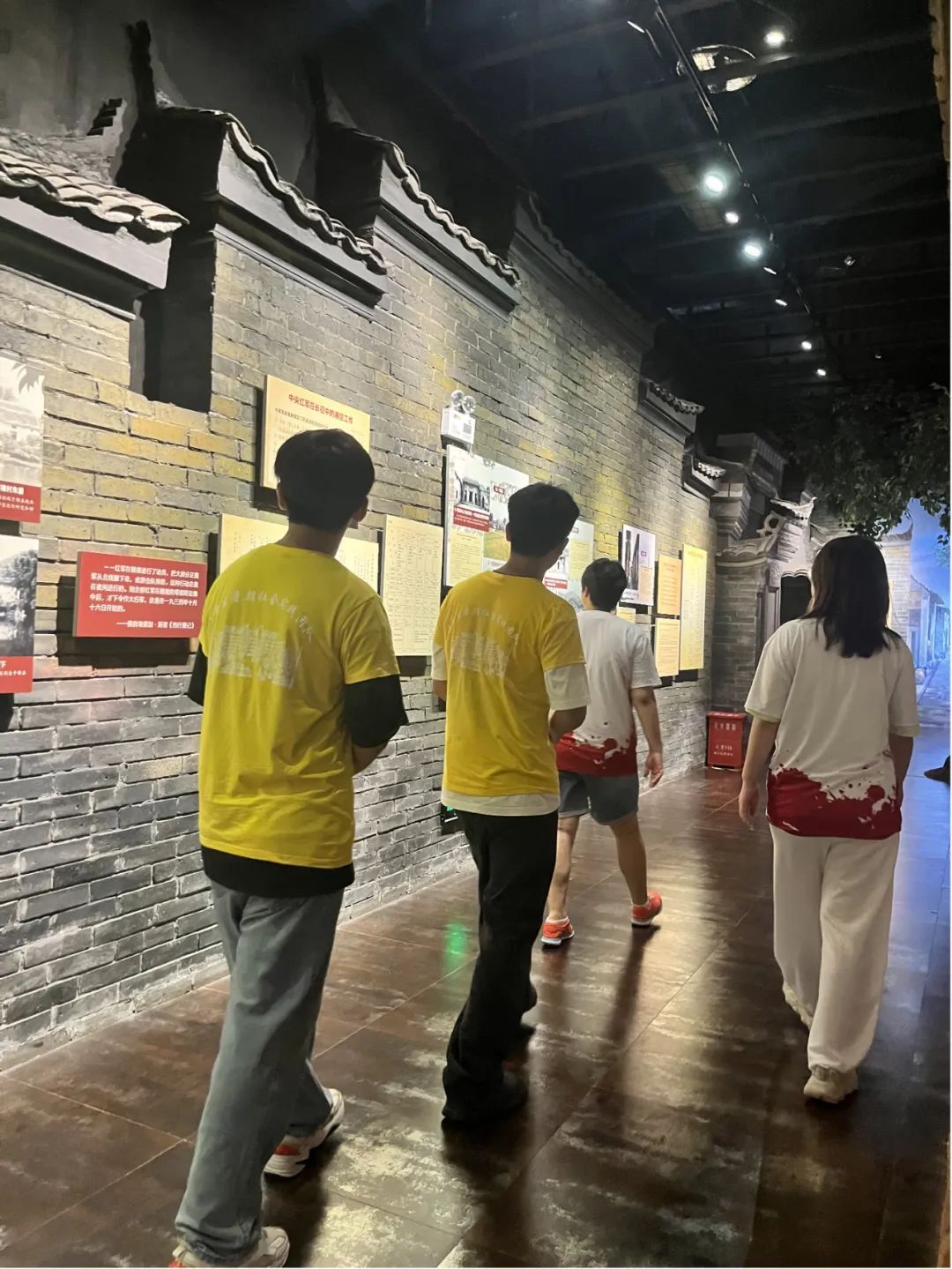 第二站,队员们走进中央红军长征出发纪念馆,参观展览触摸长征历史,聆听故事感悟革命精神。在纪念馆内,队员们发现墙壁上按照时间顺序,再现了当年庄严的历史场景,那凝聚其中紧张而又激烈的战斗气氛深深地感染着实践队每一位队员,馆内每一张图片和每一段文字、以及每一段革命烈士的英勇事迹,都更加直观地展现在队员们面前,其中那双与众不同的绣球草鞋与80双草鞋所拼成的中国版图让队员们内心深受感触,当年那段感人肺腑的忠贞爱情仿佛就出现在眼前,还有那一双双草鞋,那是苏区妇女夜以继日赶制出来的,队员们回首着那段革命先烈为民族解放、国家富强、人民幸福奋斗抗争的峥嵘岁月,英雄的红军踏上远征,革命故事激励着一代又一代人。