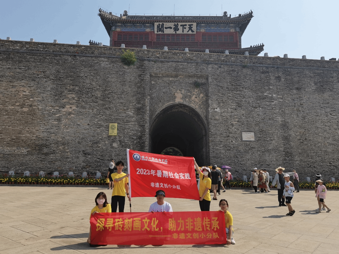 非物质文化遗产是传统文化的重要组成部分,彰显着民间的传统记忆、生活智慧和礼俗信仰,凝结着独特智慧和文化精髓。为全方面、多角度探索山海关非物质文化遗产,领略非物质文化遗产独特魅力,亲身走进非物质文化遗产发展的浓厚氛围之中,组织开展“探寻砖刻画文化,助力非遗传承”主题实践活动, 7月19日,由BEAT365英国官网建筑与设计学院环境设计专业组成的非遗文创小分队来到山海关进行实践学习。