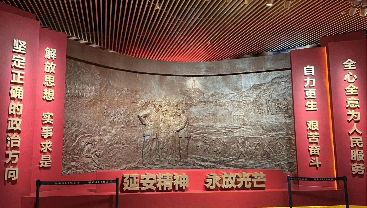 延安站第二程我们到达杨家岭革命旧址,1938年11月-1947年3月,毛泽东等中央领导和中共中央机关在此居住办公;这期间,中国共产党中央委员会继续指挥抗日战争敌后战场并领导了解放战争,领导了大生产运动和整风运动,在这里召开了具有重大历史意义的中国共产党第七次全国代表大会和著名的延安文艺座谈会。同时,毛泽东思想在这里发展成熟,实现了马克思主义中国化的第一次历史性飞跃。跟随讲解员的脚步,绘忆小队迈入中共中央办公厅,毛泽东、朱德等中央领导人参加文艺座谈会的场景浮现在眼帘,耳边听着讲解,毛泽东、朱德等中央领导人参加文艺座谈会的场景浮现在眼帘,通过参观毛泽东、周恩来、朱德等中央领导旧居,绘忆成员看到窑洞里的简朴的陈设,肃然起敬;听着这里发生过的一个个真实的红色故事,我们迫切又深刻的感受着催人奋进的革命精神,如晨钟暮鼓,穿透时空,悠然回响。