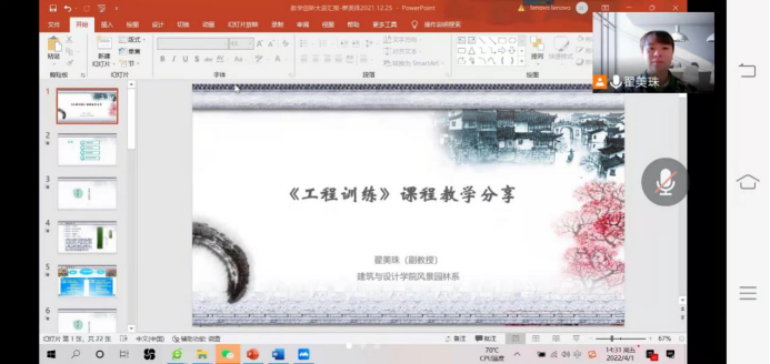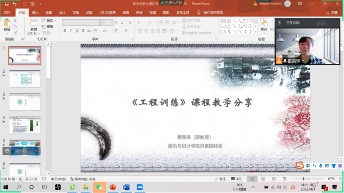 2022年4月1日,建筑与设计学院风景园林系通过腾讯会议召开了线上教学研讨会。会议由翟美珠老师主持,会议主题为“《工程训练》课程教学经验分享”。风景园林系全体专职教师参加了会议。