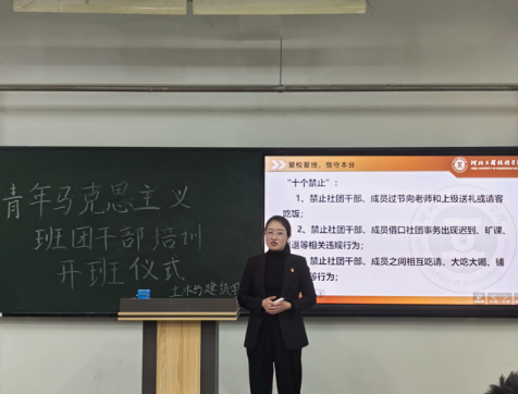 在开班仪式上,学院团总支书记王亚楠老师发表了讲话,她强调了新时代团员青年在国家发展和社会进步中的关键作用,以及团员队伍先进性建设的重大意义。同时王亚楠老师指出,作为新时代的青年,我们要坚定理想信念,树立远大理想,积极投身于国家的现代化建设,为实现中华民族伟大复兴的中国梦贡献青春力量。