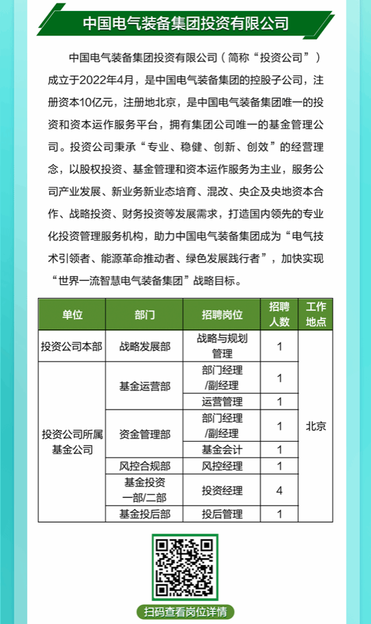 「招聘公告」中国电气装备所属单位招聘公告