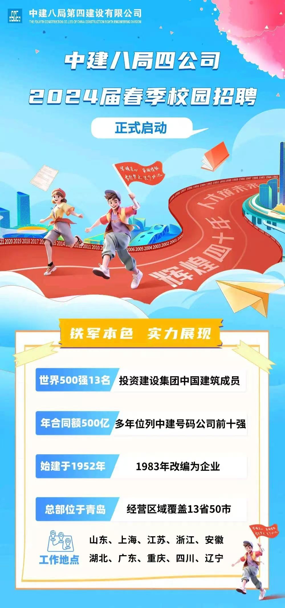 「招聘公告」中建八局四公司2024届春季校园招聘正式启动