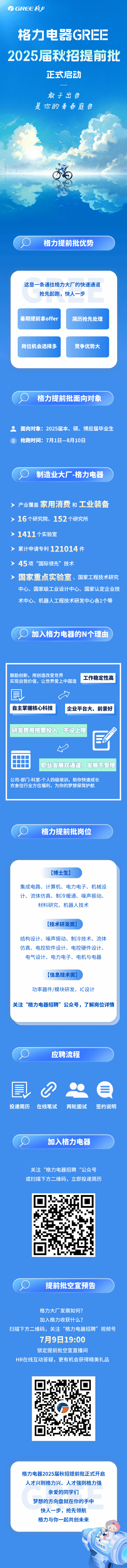 「招聘公告」格力电器2025届秋招提前批正式启动