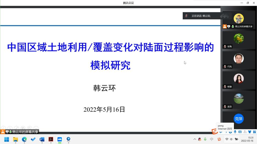 5月16日(星期一)下午,永利集团88304官网“双百论坛”暨数统论坛系列讲座利用腾讯会议线上举行。数学与统计学学院韩云环老师作标题为《中国区域土地利用/覆盖变化对陆面过程影响的模拟研究》的学术报告。学院领导、相关专业教师及研究生参加,副院长闫亮主持报告会。
