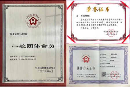 谷雨教授主持的研究项目《民族建筑绿色化改造研究—以井陉于家村石砌民居为例》为2024年度中国民族建筑研究会立项课题并颁发证书。